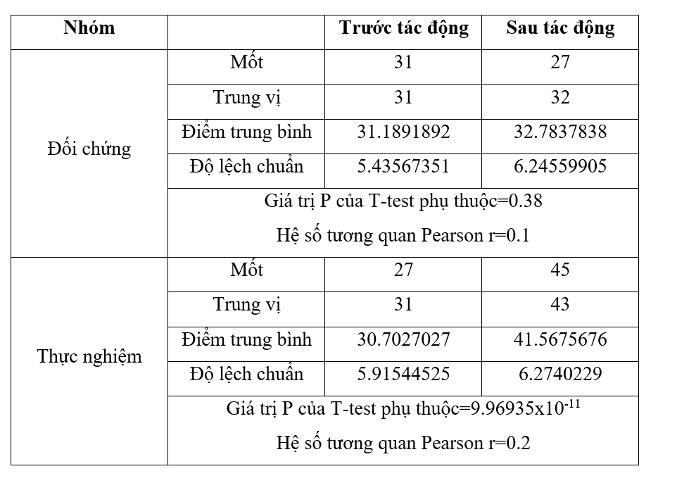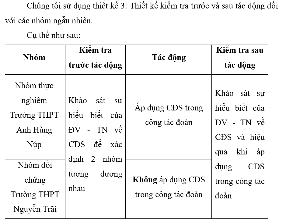 Nghiên cứu được tiến hành trên hai nhóm ngẫu nhiên là hai nhóm ĐV – TN của trường THPT Anh Hùng Núp – huyện KBang và trường THPT Nguyễn Trãi – thị xã An Khê.