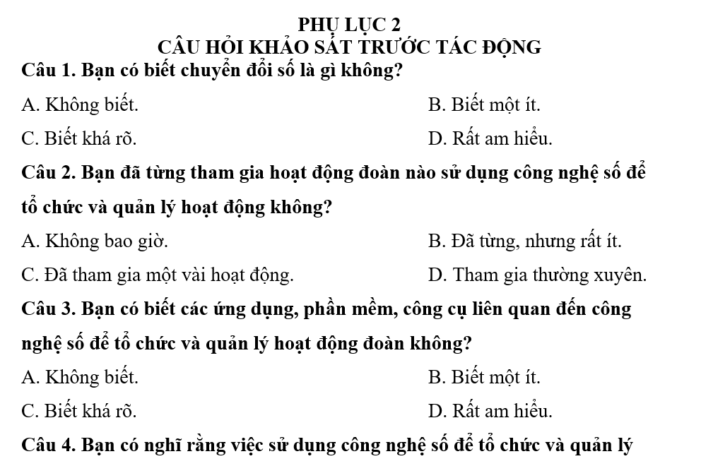 💢PHỤ LỤC CÂU HỎI KHẢO SÁT TRƯỚC TÁC ĐỘNG