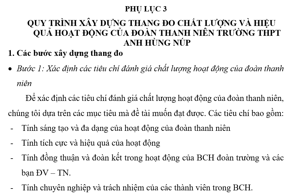 💢PHỤ LỤC QUY TRÌNH XÂY DỰNG THANG ĐO CHẤT LƯỢNG VÀ HIỆU QUẢ HOẠT ĐỘNG ĐOÀN