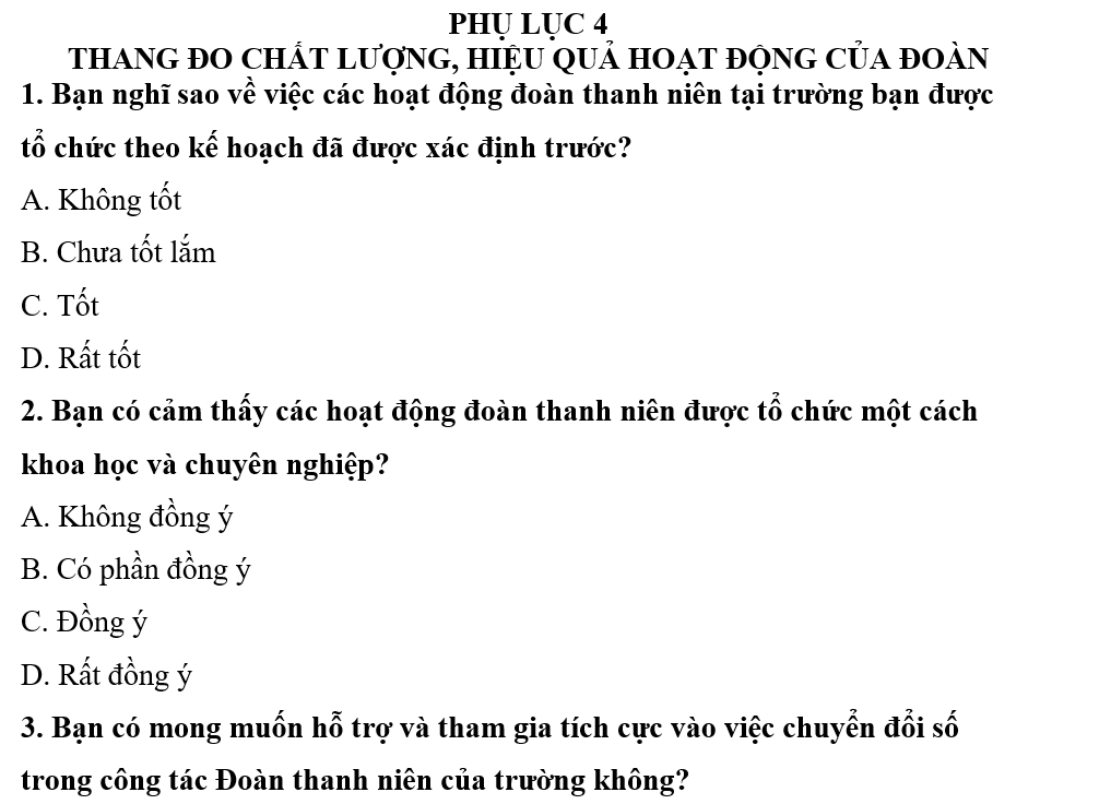 💢PHỤ LỤC THANG ĐO CHẤT LƯỢNG, HIỆU QUẢ HOẠT ĐỘNG ĐOÀN